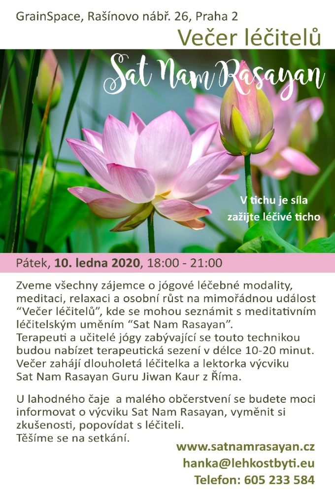 Večer zahájí dlouholetá léčitelka a lektorka výcviku Sat Nam Rasayan Guru Jiwan Kaur z Říma.